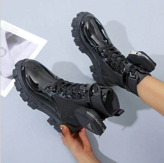 Chic Embroidered Lace-Up Mid-Calf Boots with Bold Thick Heels for Women