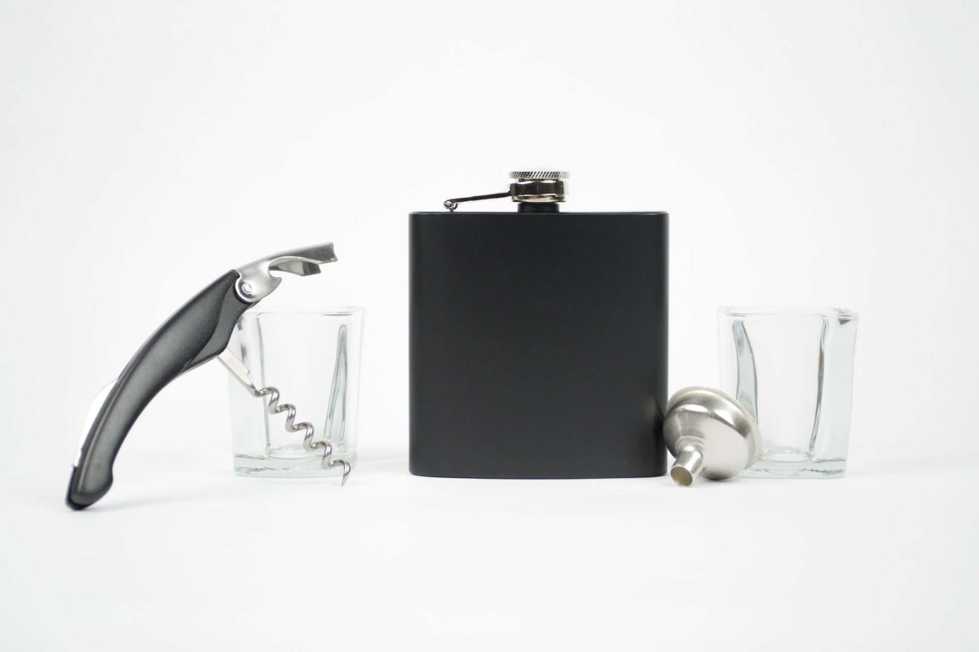 - Enthält: Trichter, Flaschenöffner, 2 Schnapsgläser