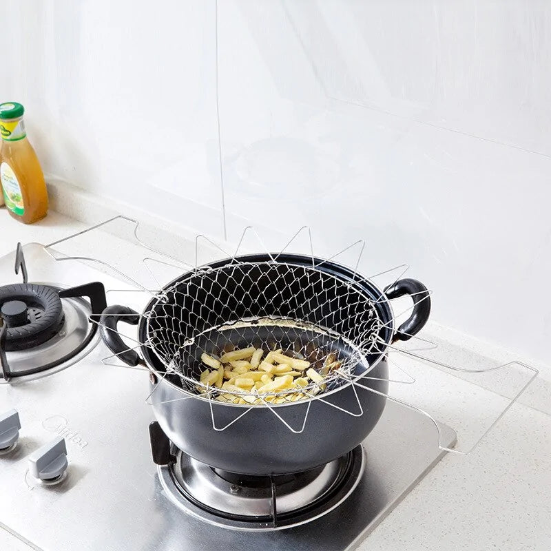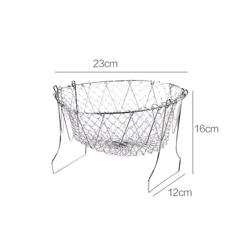 Dieser Korb wurde mit Blick auf die Zweckmäßigkeit entworfen und verfügt über ein faltbares Design für einfache Lagerung und eine kompakte Stellfläche. Seine hitzebeständigen Eigenschaften machen ihn perfekt für eine Vielzahl von Kochaufgaben, vom Braten und Blanchieren bis zum Dämpfen und Waschen von Gemüse.