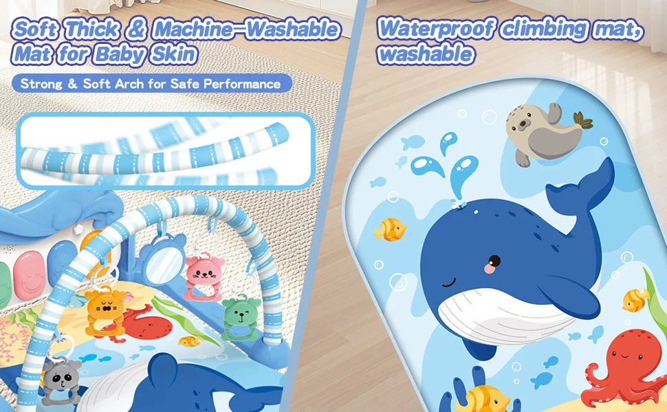 【Specially Designed for Newborns & Up】 Crafted for newborns and growing babies to aid early development. The kick-activated piano with cheerful tunes encourages kicking. Builds arm, leg, tummy, back & neck muscles, boosting hand-eye coordination and motor skills.