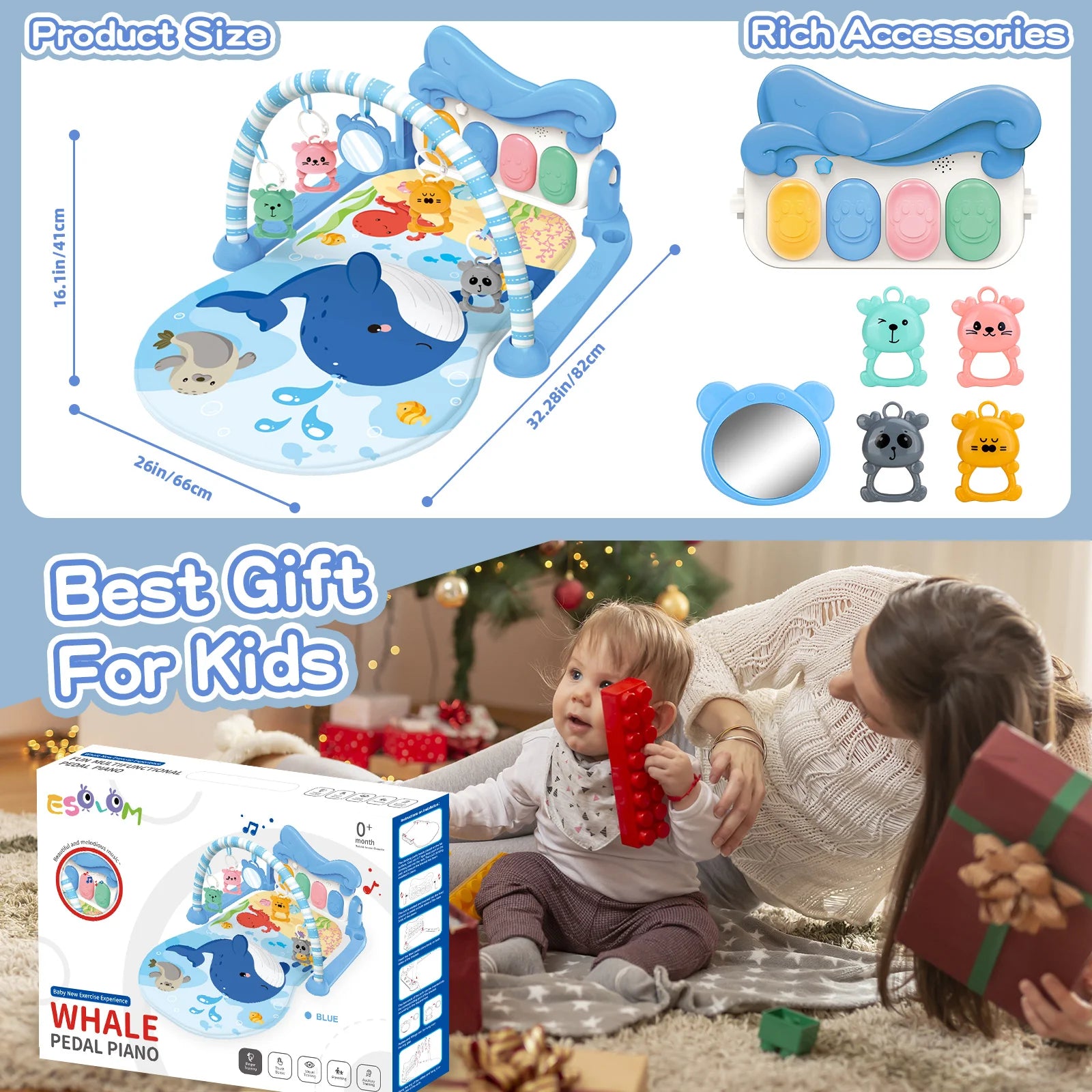 Baby Play Mat Baby Gym For Floor, Kick And Play Piano Mat Gym, Tummy Time Baby Activity Mat With 5 Infant Sensory Baby Toys, Mus