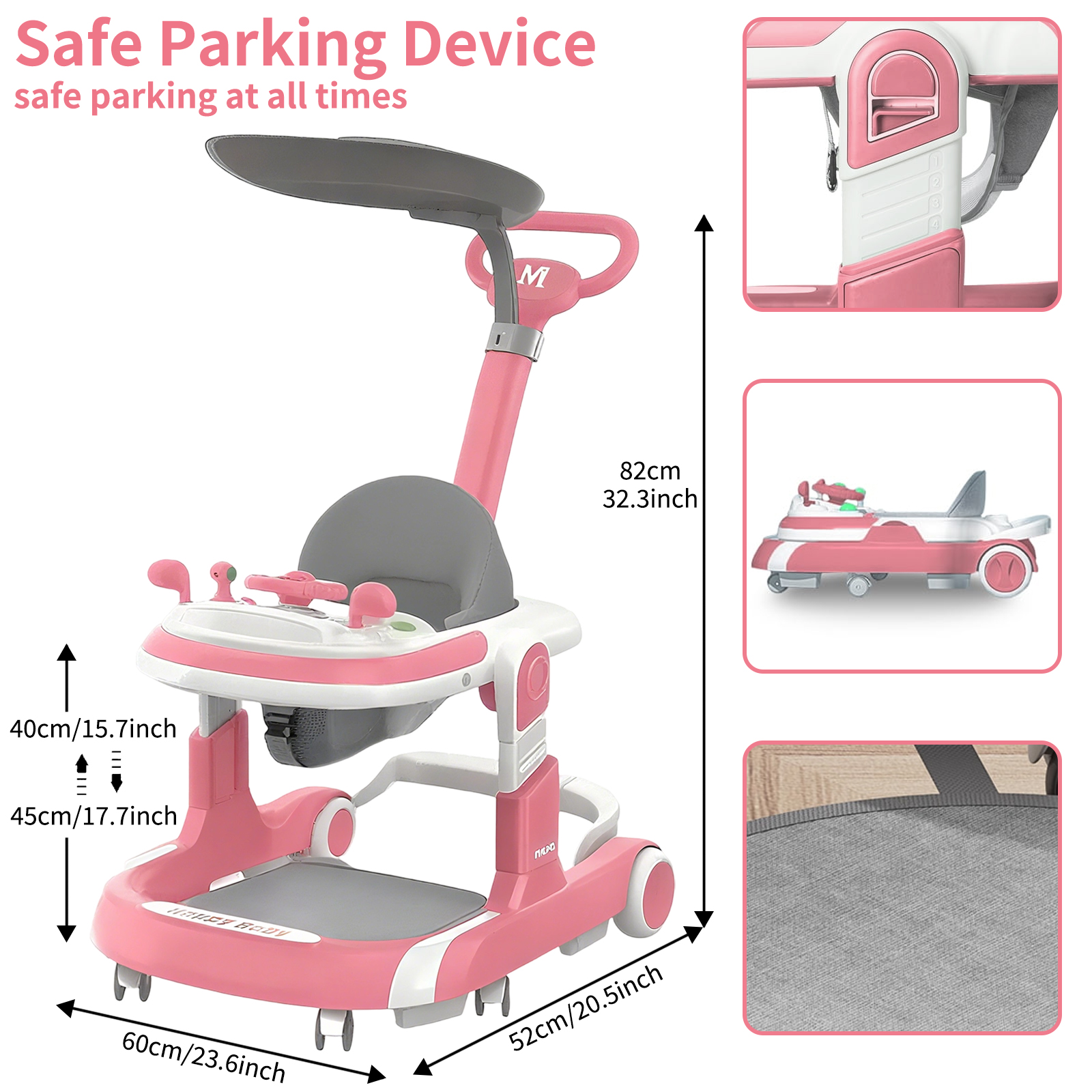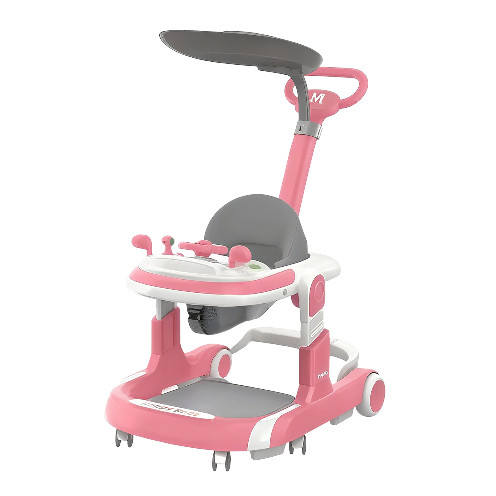 New 4 In 1 Baby Infant Walker Toddler Baby Push Walker Removable Feeding Tray And Music Tray Foldable Walker Child Handcart