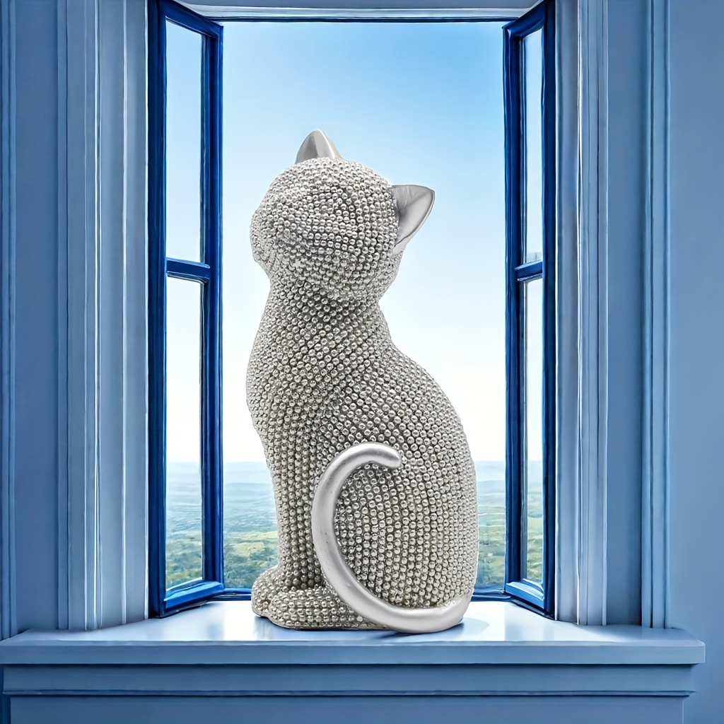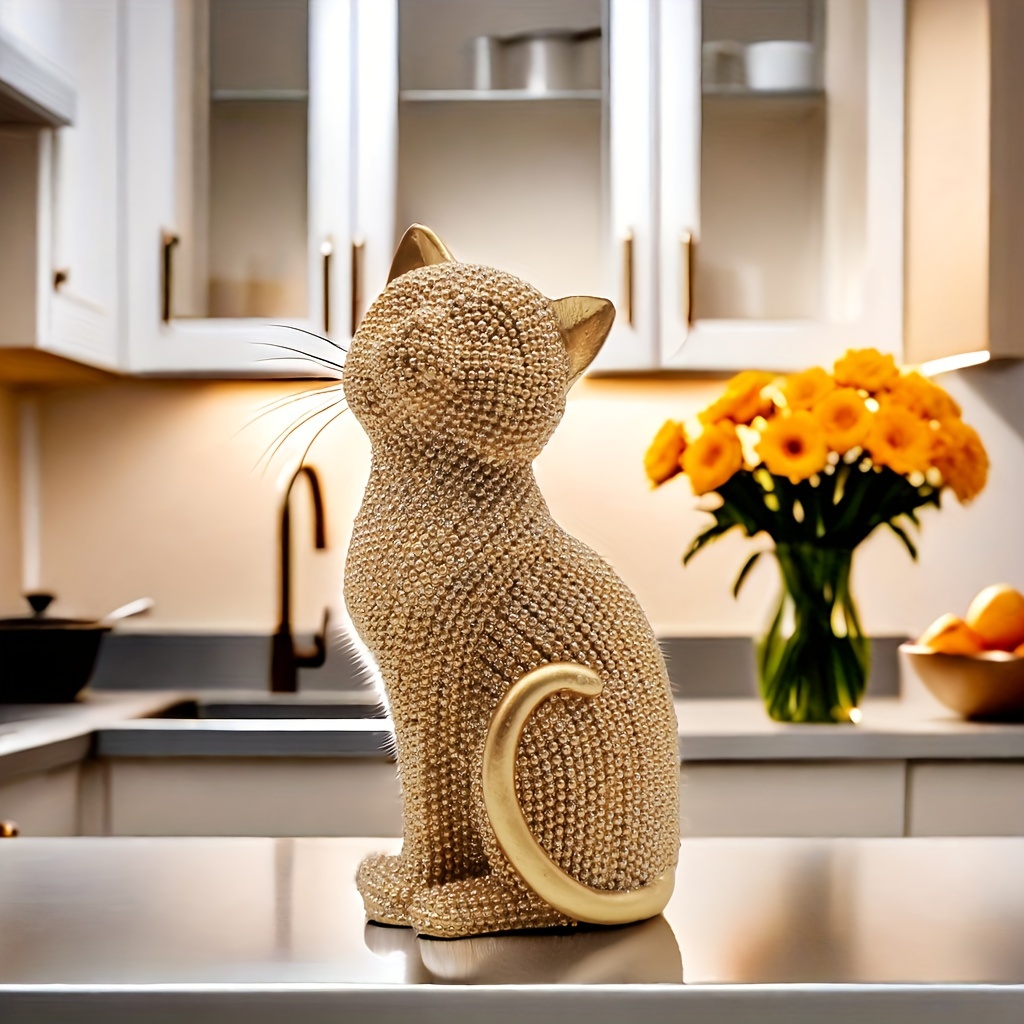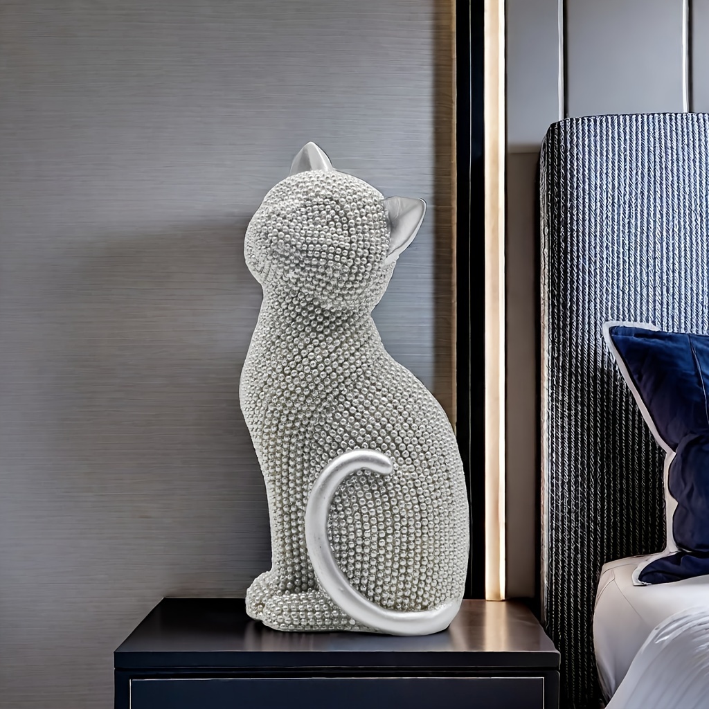 1 5.86-inch creative Valentine's Day birthday gift Point beads Sitting posture cat resin home decor living room entrance Bedroom Study Office desktop Creative arts and crafts decor for Christmas,halloween decorations,fall hom