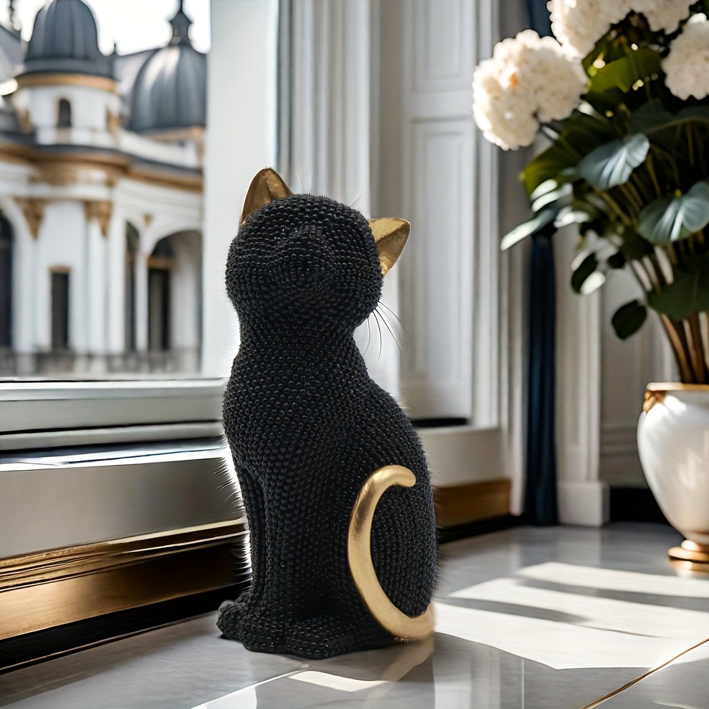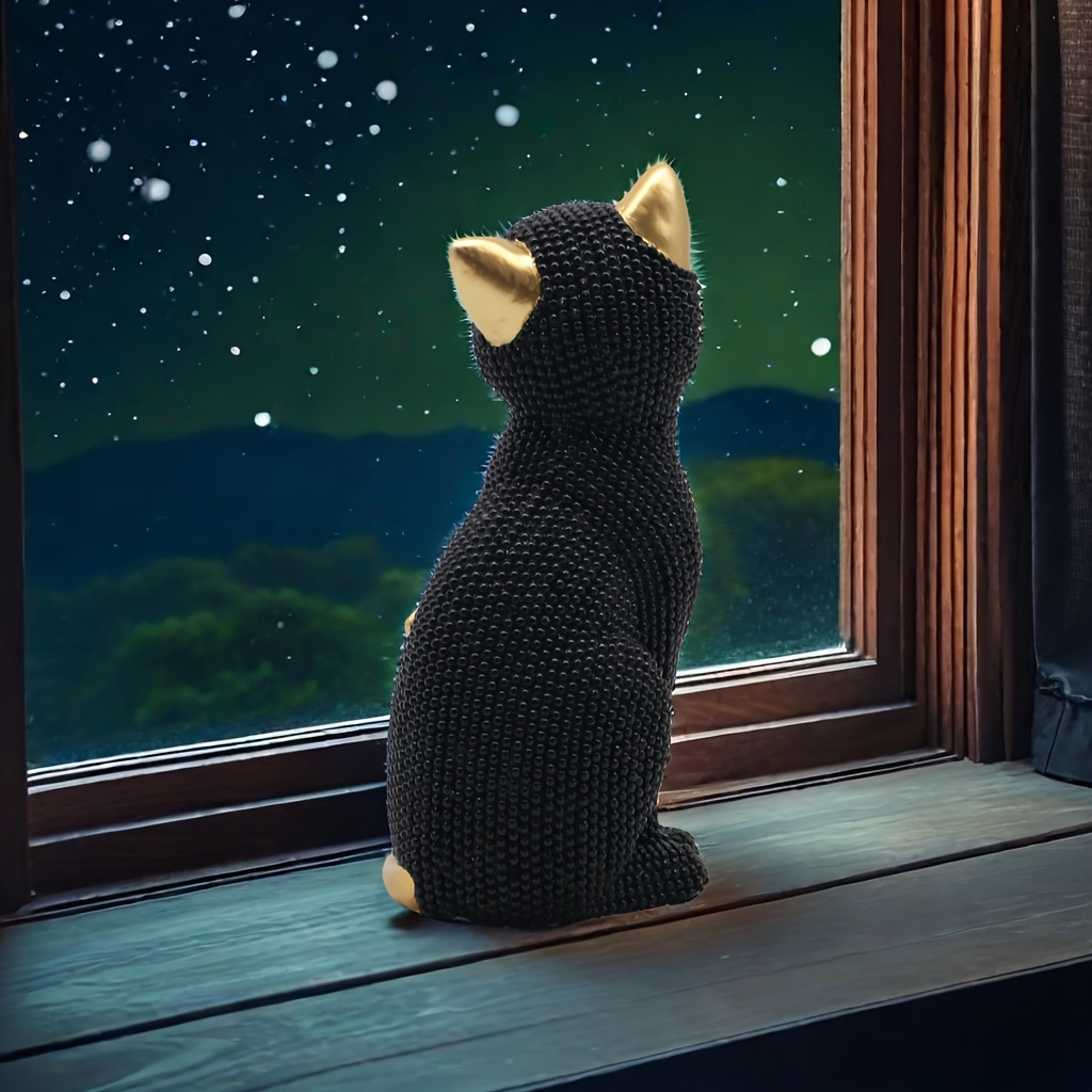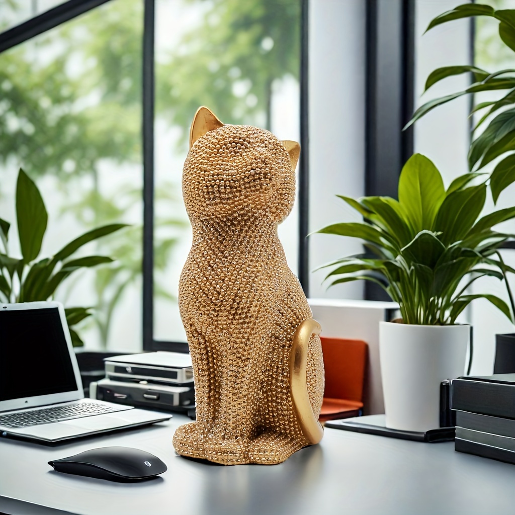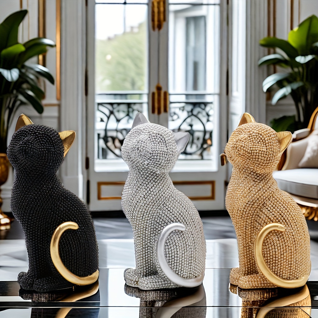 1 5.86-inch creative Valentine's Day birthday gift Point beads Sitting posture cat resin home decor living room entrance Bedroom Study Office desktop Creative arts and crafts decor for Christmas,halloween decorations,fall hom