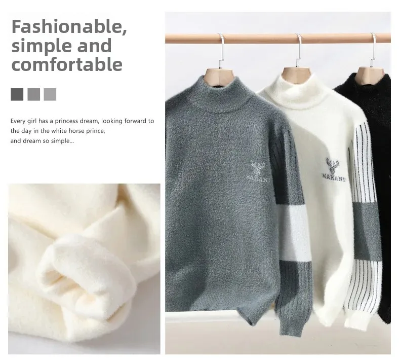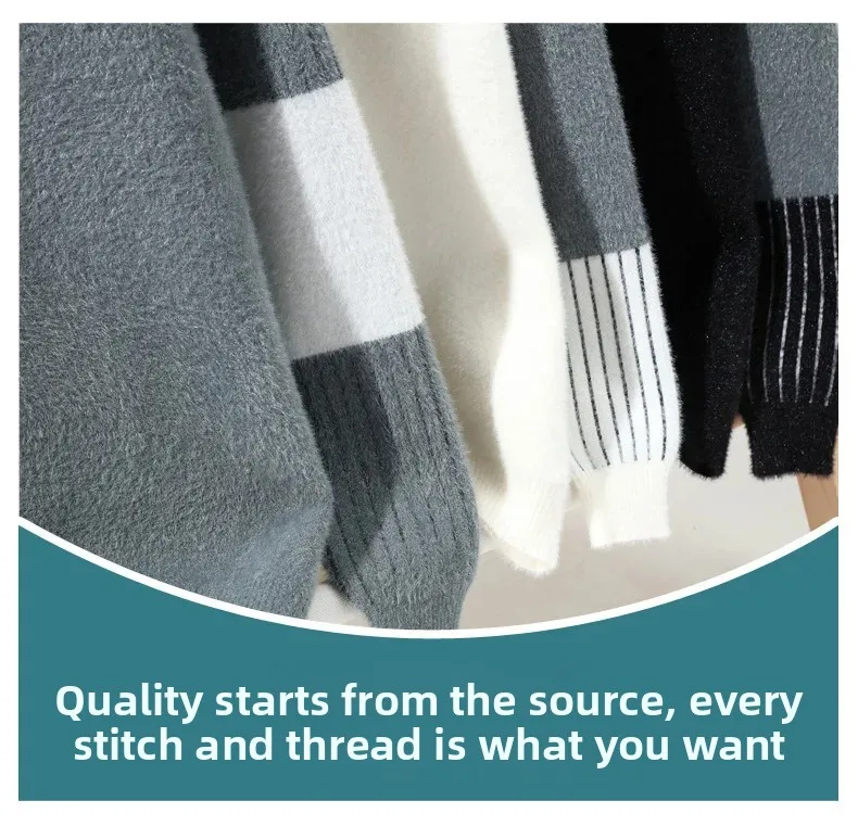 • Thickened Warm Base : Crafted with mink velvet, this sweater offers a thickened warm base, perfect for autumn and winter wear.