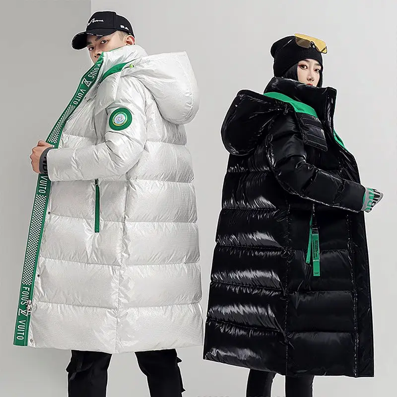 New Winter Jacket Men's Long Luxury Business Thickened Down Cotton Warm Parkas Men's Street Snow Cold-proof Hooded Padded Coat