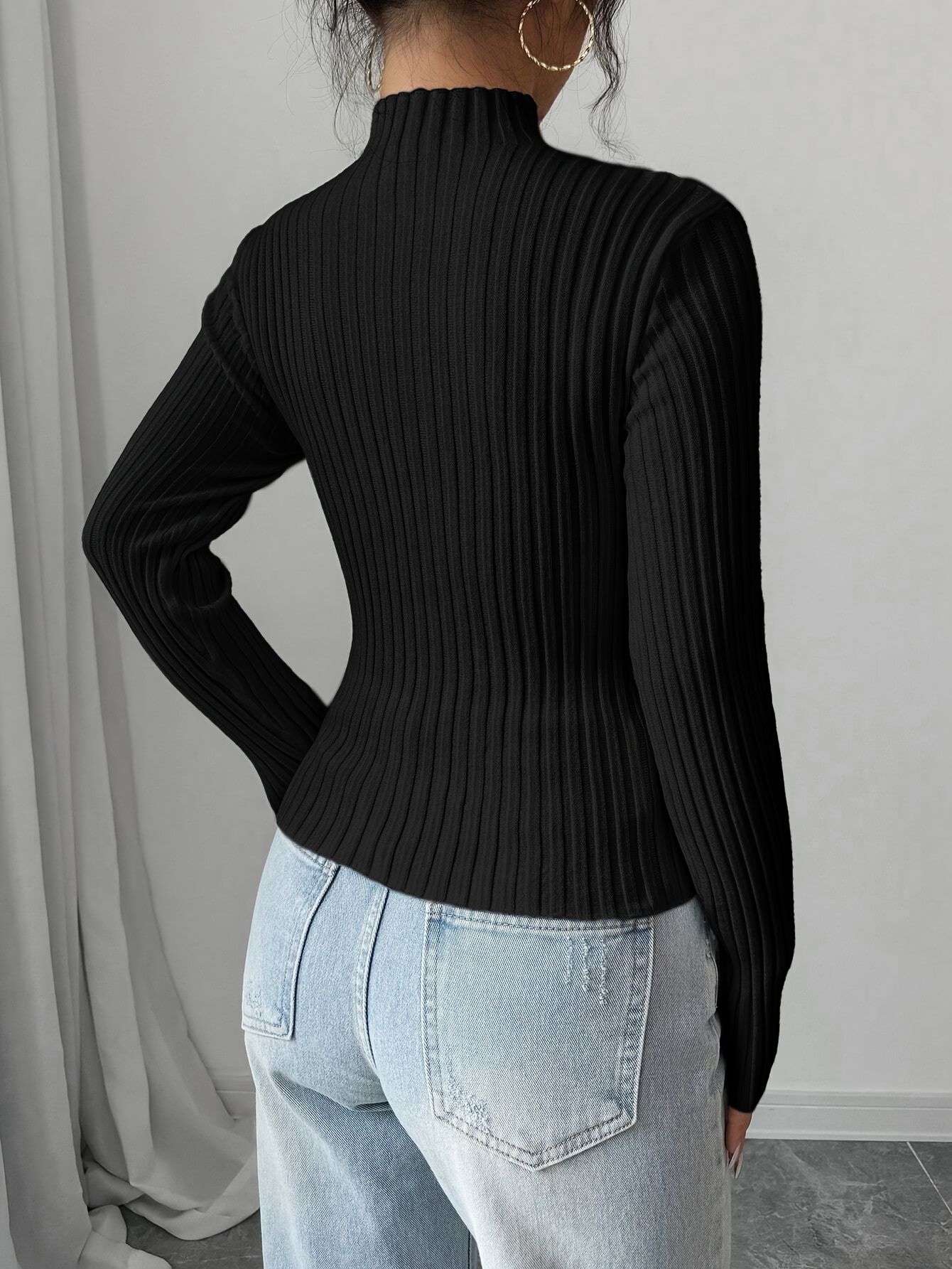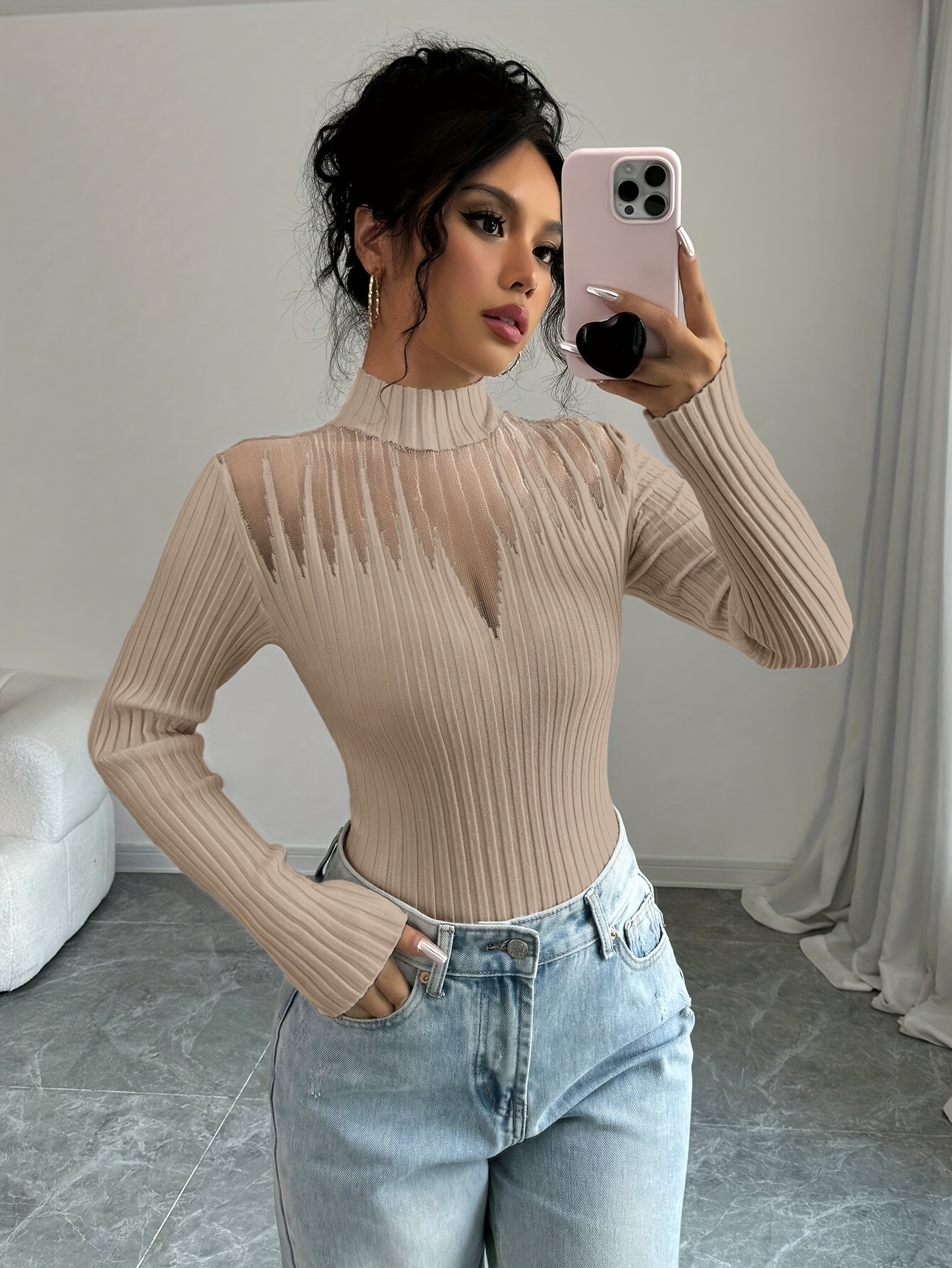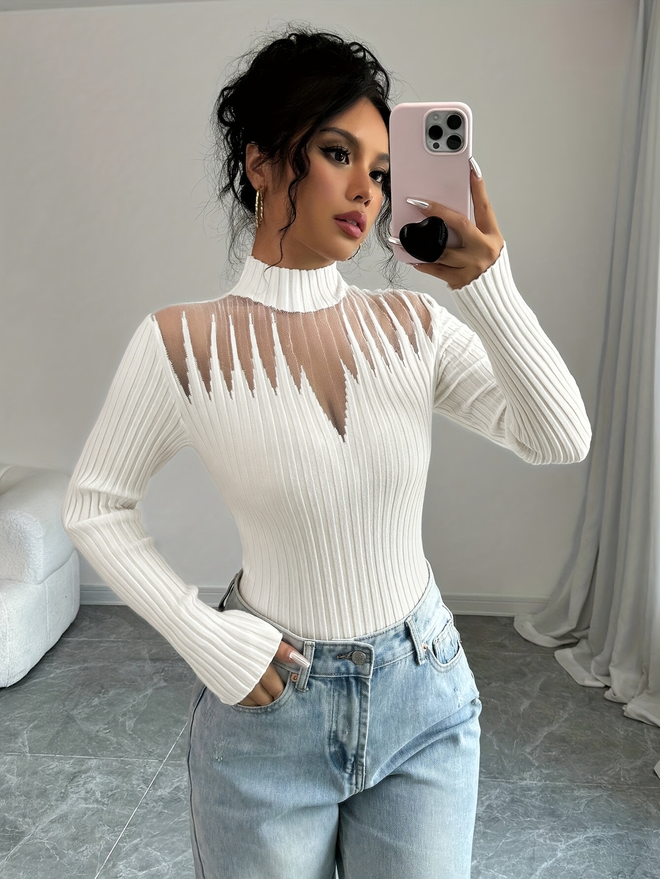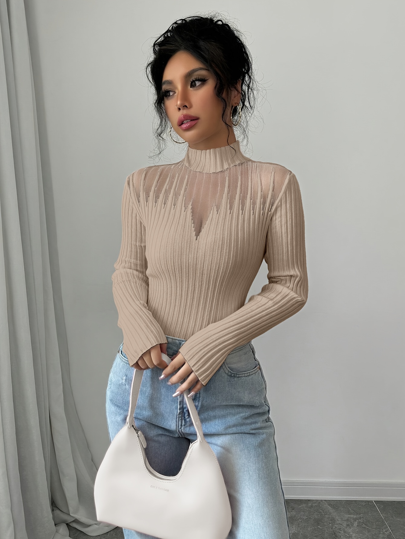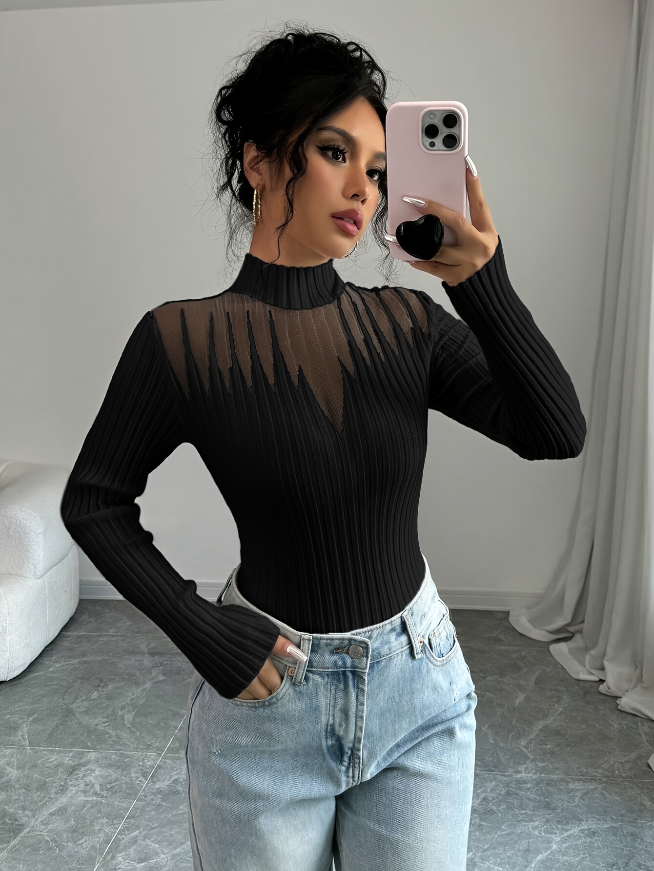 New Women's Sexy Elegant Fashion Turtleneck Top, Short Slim-Fit Long Sleeve, Exquisite Hollow Mesh Design, Beautiful Pullover
