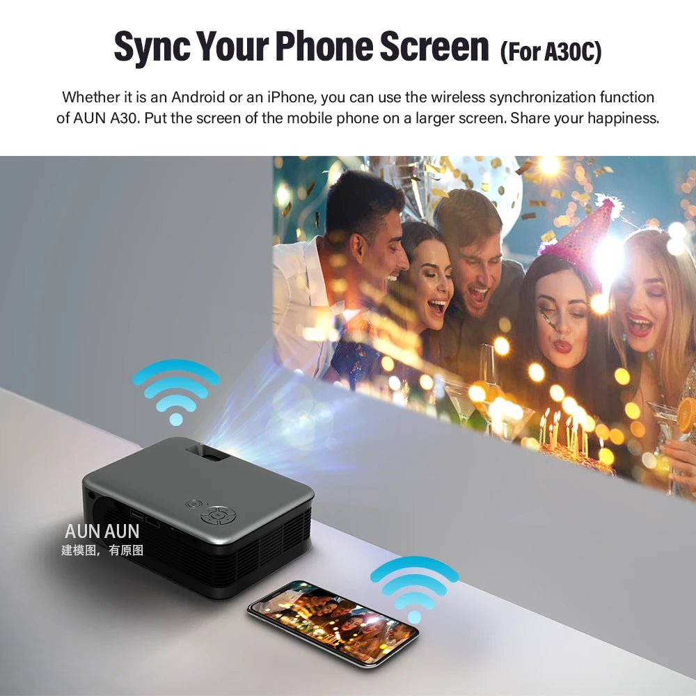 Immerse yourself in the ultimate home theater experience with the A30C Pro MINI Projector! Whether you're enjoying movie nights with family or presenting slideshows at work, this smart TV sync projector brings your content to life with stunning clarity and convenience.