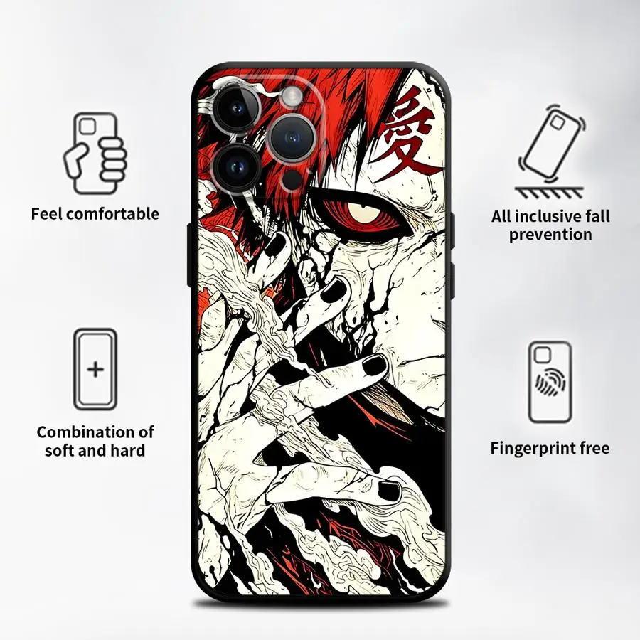 Anime Cool Gaara Black Soft Phone Cover Case for iPhone XR 13 12 11 Pro Max 15 16 14 Plus 7 8 XS Max