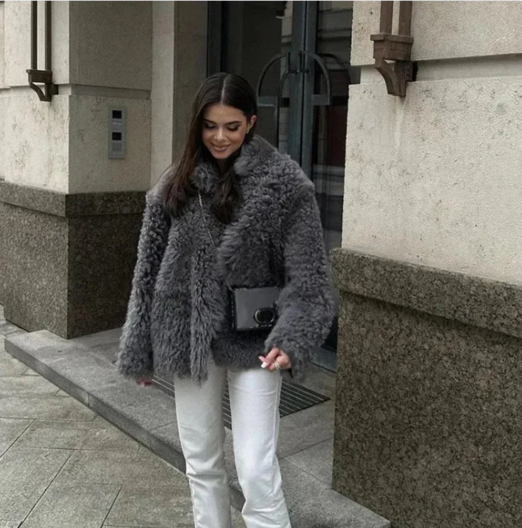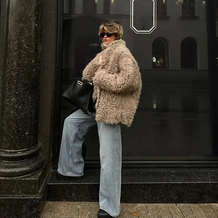 The ArcticGrace Lamb Wool Overcoat is the ultimate choice for women who value both elegance and functionality. Embrace the winter season with a coat that combines luxurious warmth with a sophisticated design.