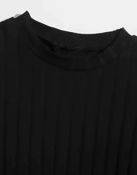 Ribbed Crew Neck Long Sleeve Top: The top is crafted from a ribbed fabric that provides a textured, stylish look while ensuring comfort and warmth. The crew neck design offers a classic silhouette, and the long sleeves make it suitable for cooler weather or layering.
