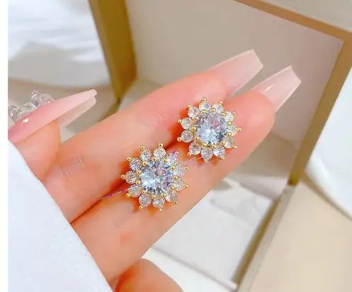 - Zircon Flower Stud Earrings: Accentuate your look with these exquisite zircon flower studs, offering a brilliant sparkle that adds a touch of luxury.
