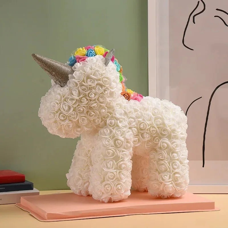 Immerse yourself in the allure of perpetual bloom with our Rose Unicorn. Crafted from eco-friendly, scent-free materials, this unicorn offers a mesmerizing visual appeal with its voluminous, lifelike appearance. It's crafted to withstand the test of time—fade-resistant and enduring, mirroring the everlasting nature of your affections.