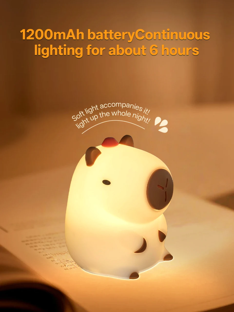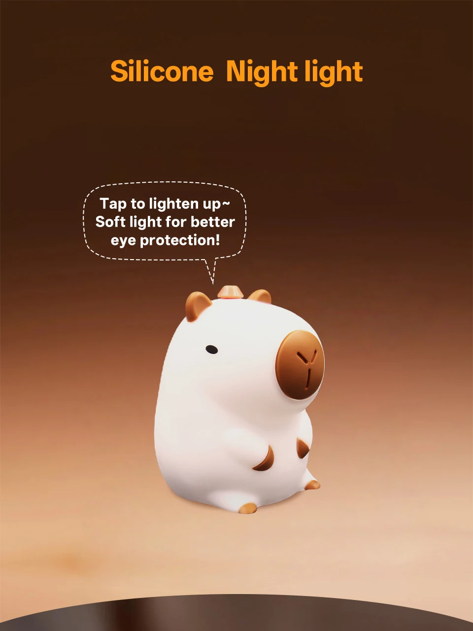 GGbingo Rechargeable Cute Capybara Night Light Novelty Dimmable Nursery Nightlight Touch Lamp Silicone Pat Lamp for Kids Room