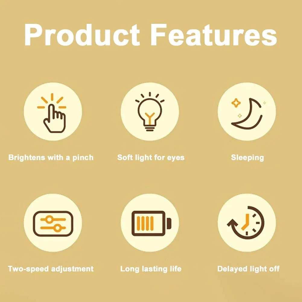 3.Portable and Rechargeable: This cute touch lamp is highly portable, powered by a battery and rechargeable via USB. It provides soft, easy-to-see light, making it perfect for use anywhere in the home or on the go.