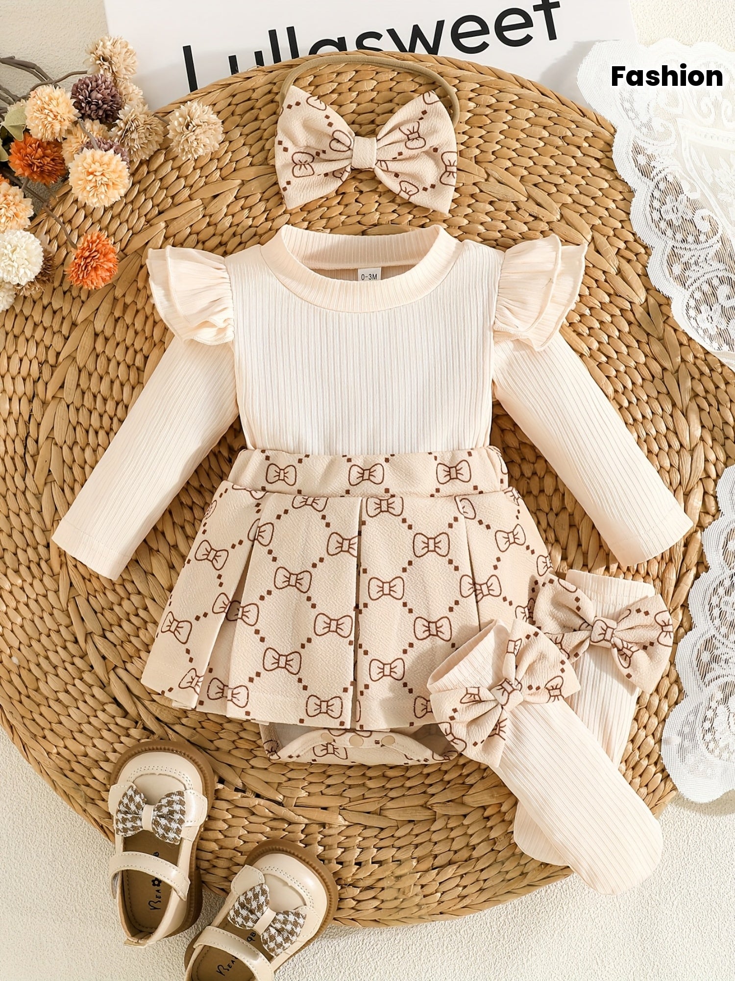 Girls' Fashion Butterfly Print Long Sleeve Dress + Bow Hair Accessory + Pair of Socks, Perfect for Outdoor
