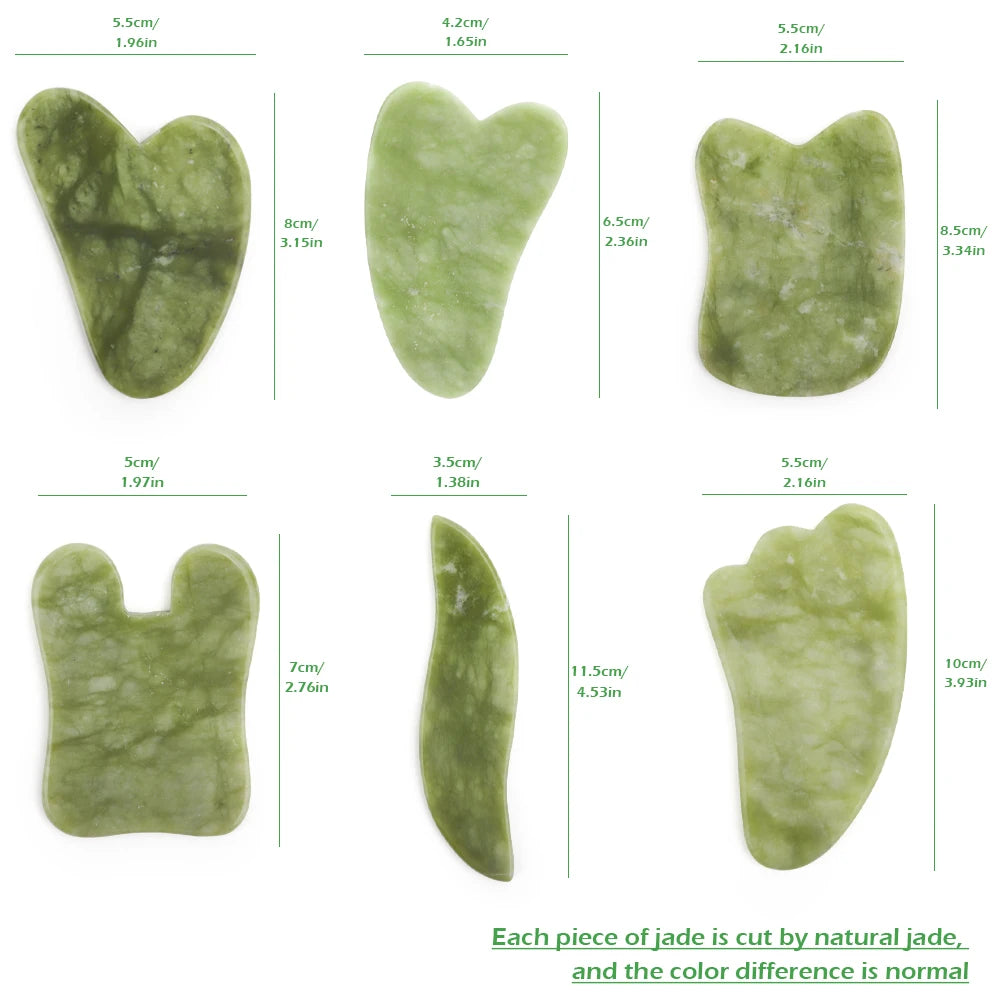 Our Gua Sha Massager Kit is crafted from high-quality jade stone, known for its healing properties and ability to promote circulation and lymphatic drainage. With regular use, the gentle massaging action helps to reduce puffiness, improve skin tone, and promote a more youthful appearance, leaving your skin looking and feeling revitalized.