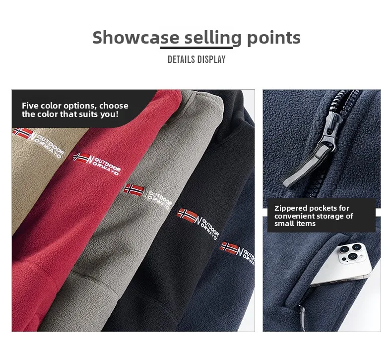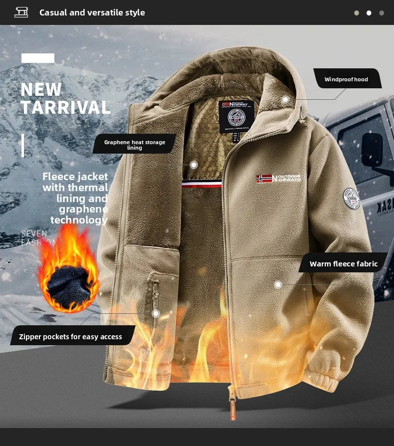High Quality Norwegian Style Fleece Lined Hooded Jacket Men's Outdoor Sporty Fleece Jacket Warm Cardigan Style Pure Color