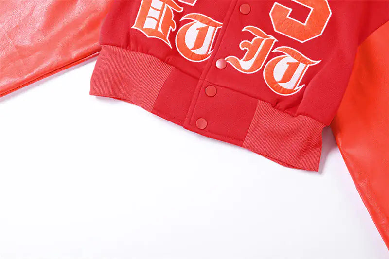 Crafted for those who are MVPs of fashion, this jacket is the ultimate blend of sporty and chic. With its cropped silhouette and classic varsity design, it's perfect for adding a pop of personality to any outfit. Whether you're cheering from the sidelines or hitting the streets, this jacket will have you feeling like a true style MVP. Plus, with our fun stickers included, you can customize your jacket and make it uniquely yours!
