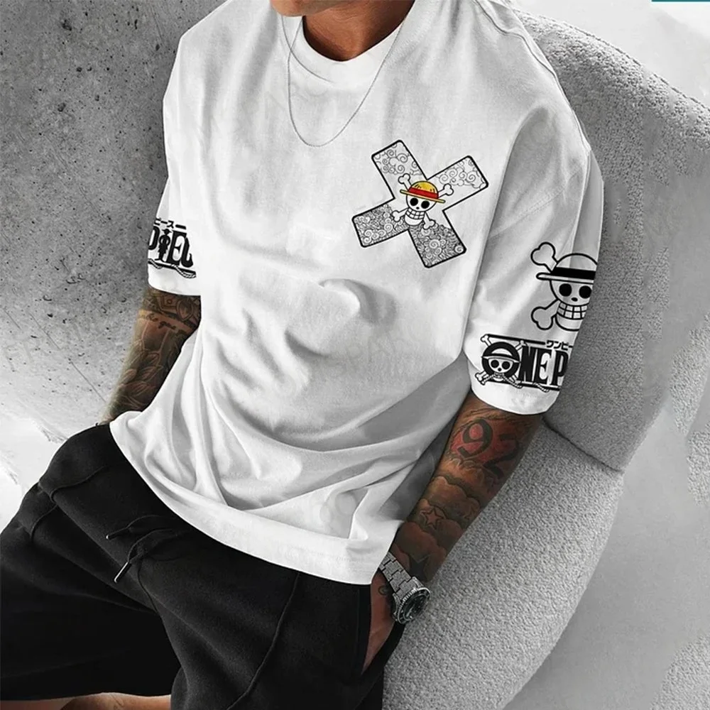 One Piece Men's T-shirt Summer Monkey D. Luffy Classic Anime Autumn Boy Children's Short-sleeved Trendy Parent-child Outfit