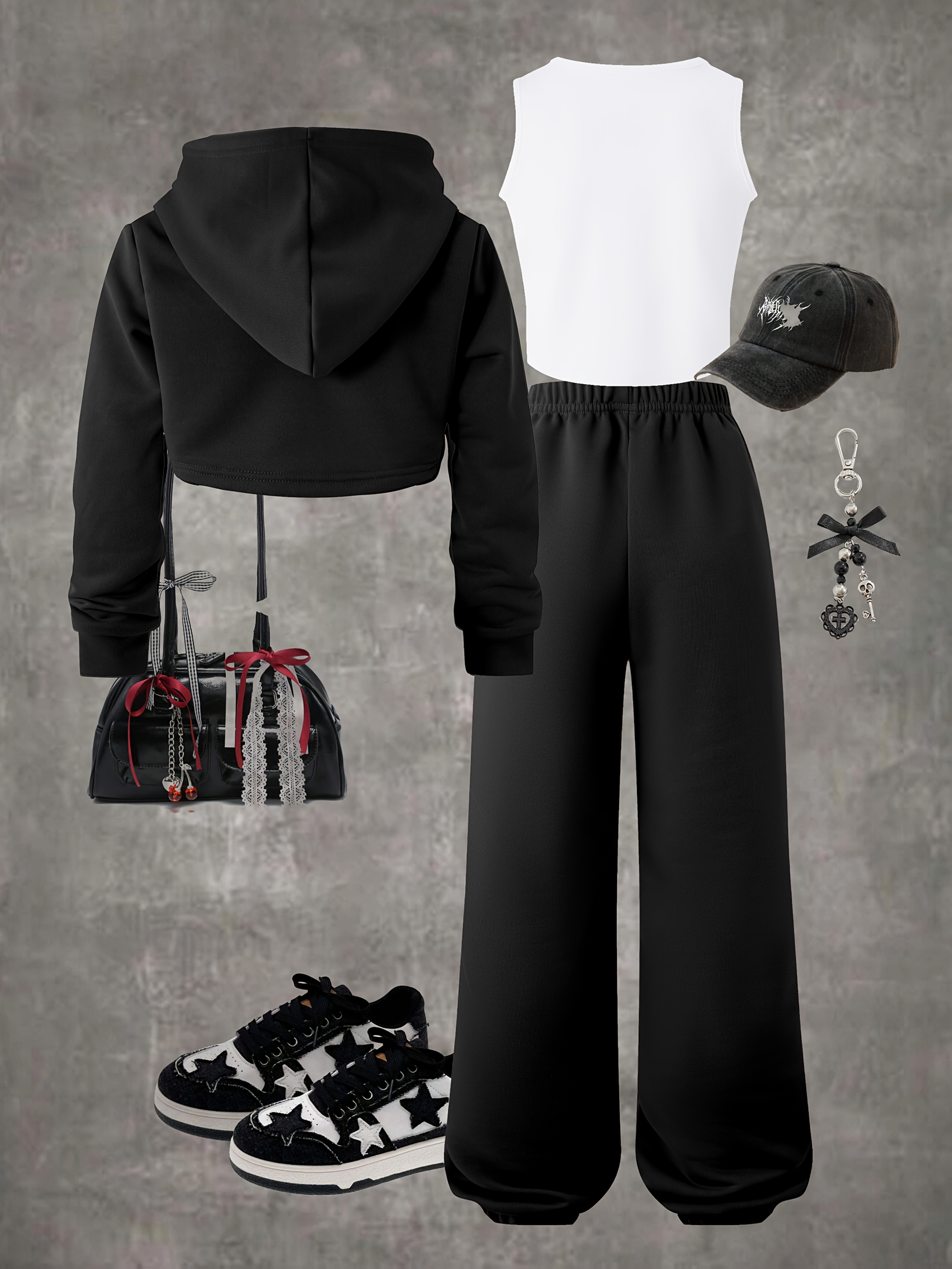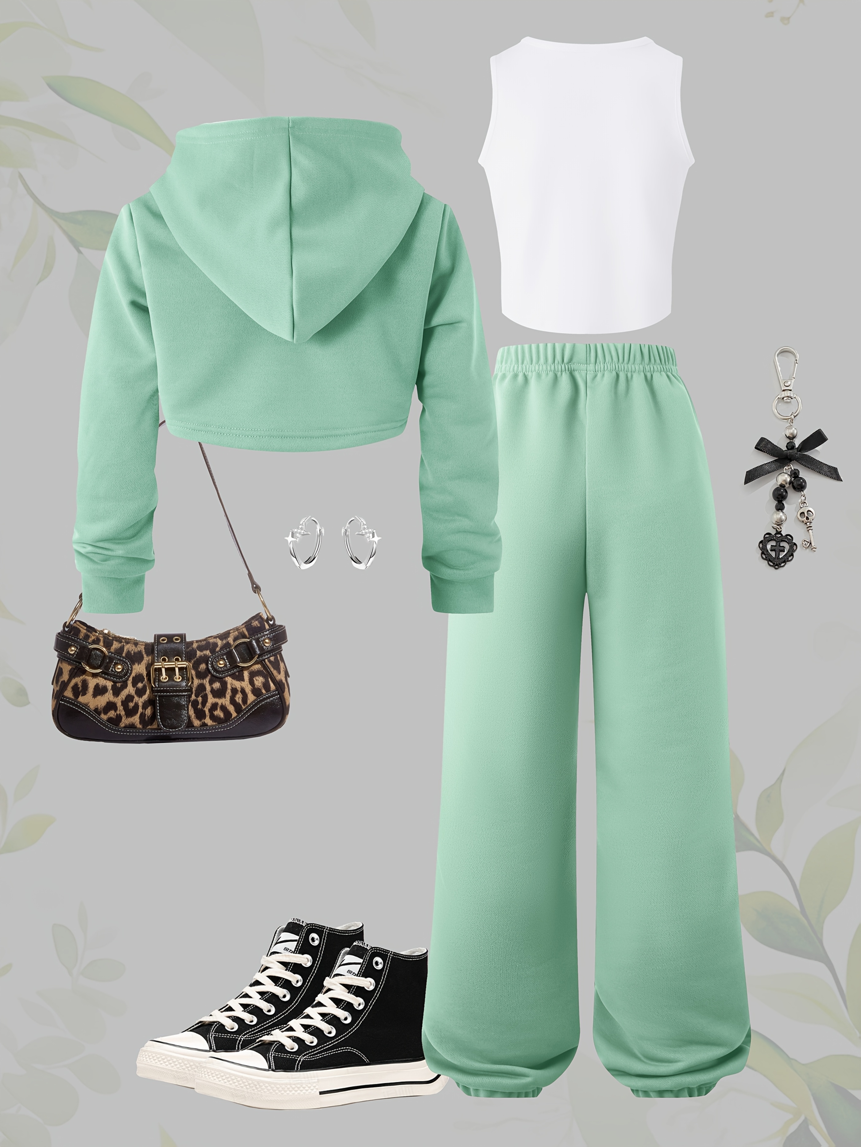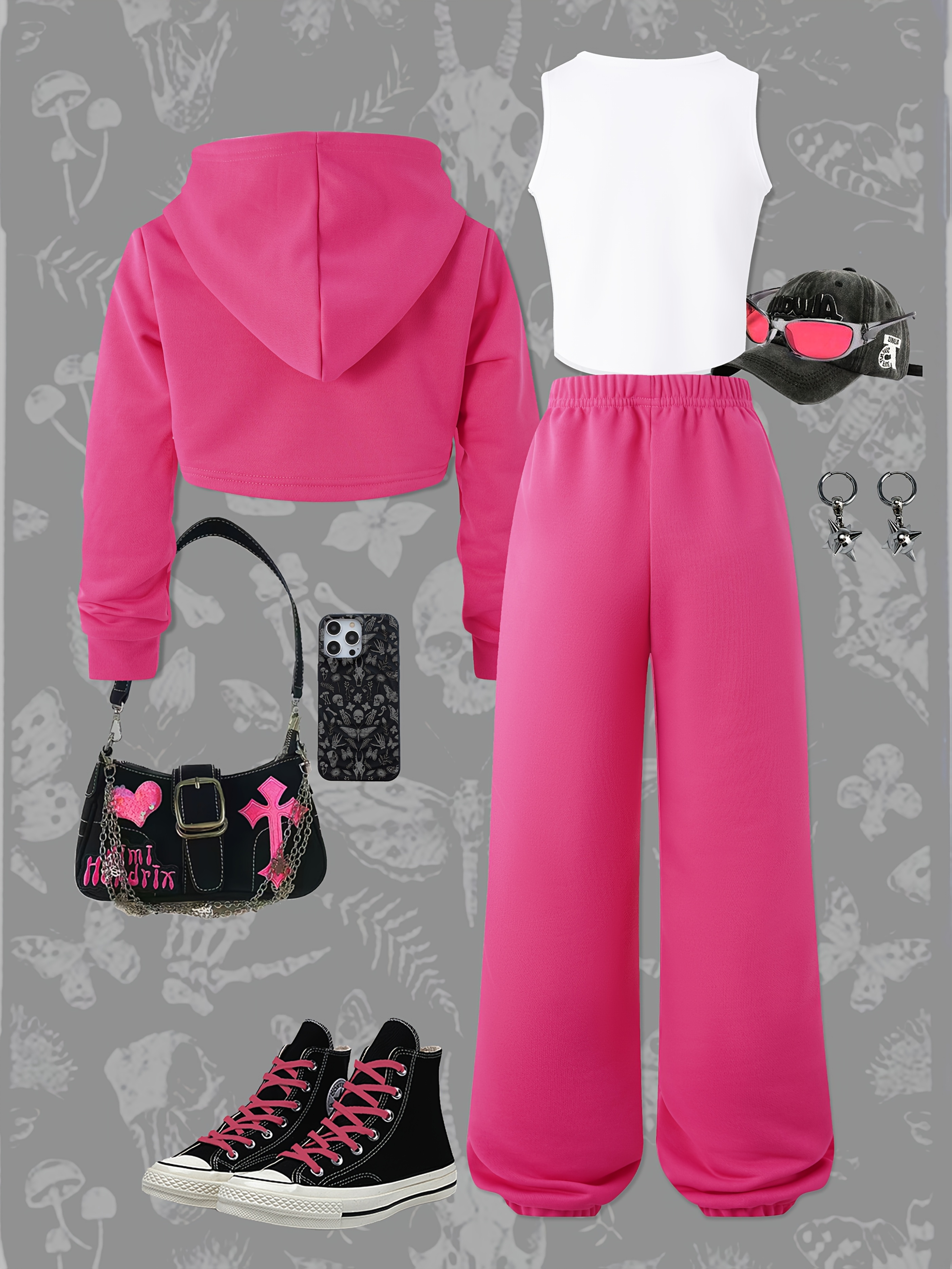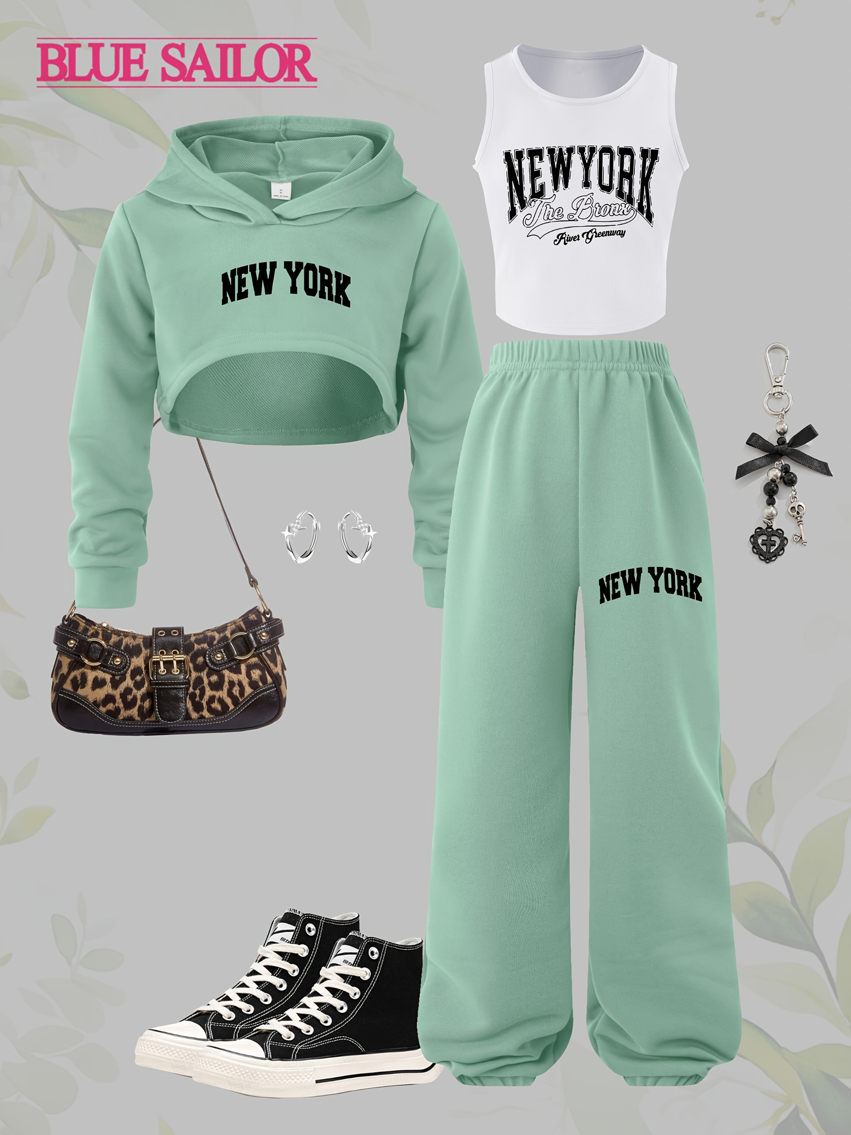 P7967(G18) 3pcs NEW YORK Girls' Long-Sleeve Hooded Cropped Sweatshirt, Tank Top, And Long Pants Casual Fashion Sports Outdoor Set, for Outdoor