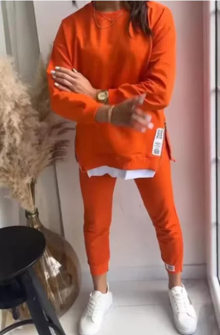 Step into the spotlight with our Sporty Chic Long Sleeve Pants Set. This trendy outfit, available in an array of vibrant colors, features a sleek long-sleeve top with a stylish zipper detail and comfortable cropped pants. Crafted from a high-quality cotton-polyester blend, it combines casual comfort with a chic streetwear vibe. With sizes ranging from S to 5XL, this set ensures a flattering fit for every woman looking to make a fashion statement.