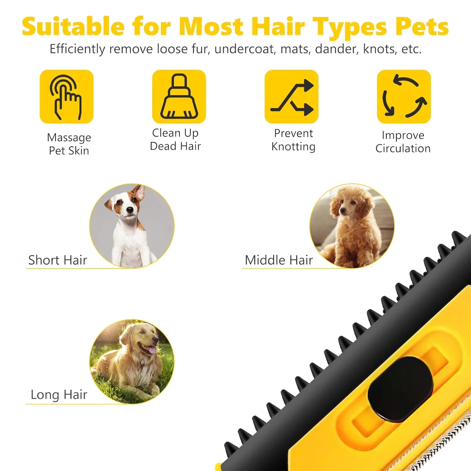 Featuring a unique combination of rubber bristles and retractable blades, The King Komb gently massages your pet's skin while effectively removing loose fur, dirt, and dander. The ergonomic design fits comfortably in your hand, allowing for easy and effortless grooming sessions that your pet will love.