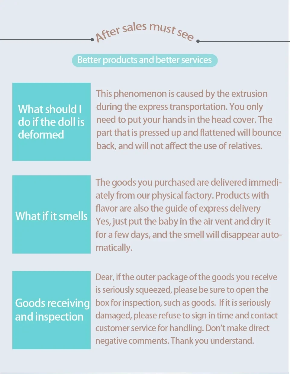 3. If there is a problem with the product, please contact the customer service first and do not open itThis debate has given us a bad evaluation, and we will actively cooperate with you to solve this problem.