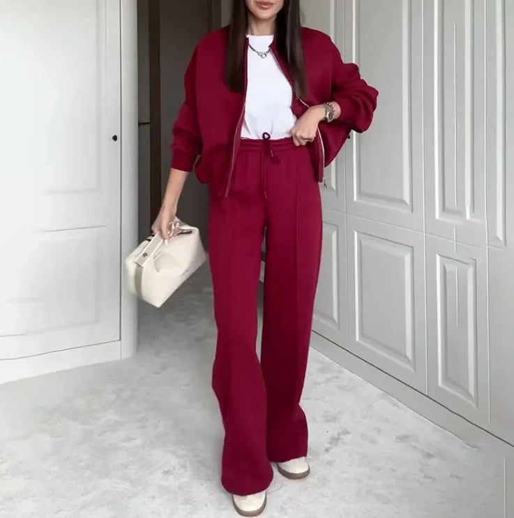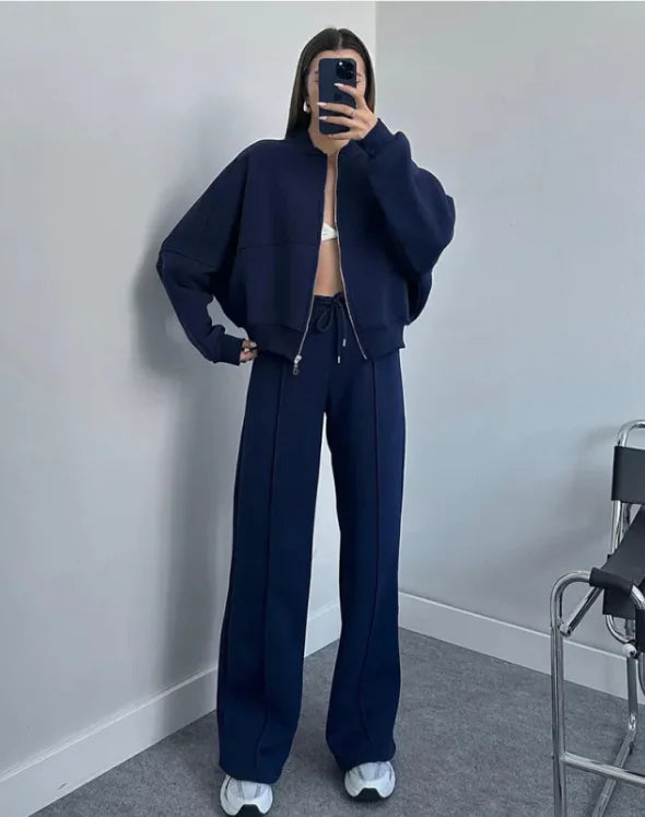 Upgrade your casual wardrobe with the UrbanEase Zip-Front Sweater & Trousers Set, and enjoy a blend of style, comfort, and practicality.