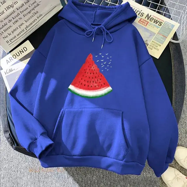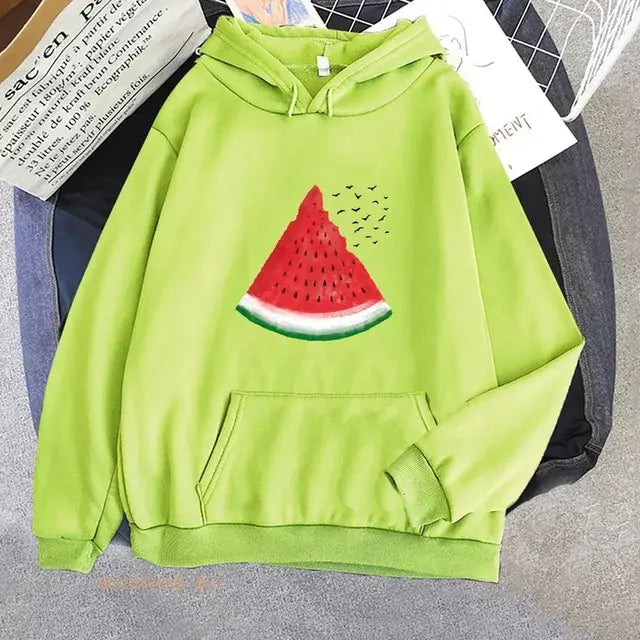 Let your fashion taste shine with the Watermelon Graphic Sweatshirt Hoodie. Whether you're a fan of bold prints or simply love the refreshing vibe of watermelons, this hoodie is sure to become a favorite in your collection, bringing a slice of summer to your wardrobe all year round