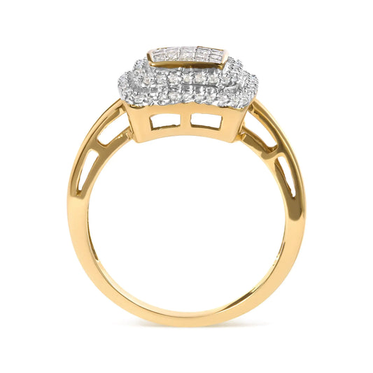 10K Yellow Gold 1/2 cttw Round and Princess Diamond Composite Head and Halo Ring (H-I Color, SI1-SI2 Clarity)